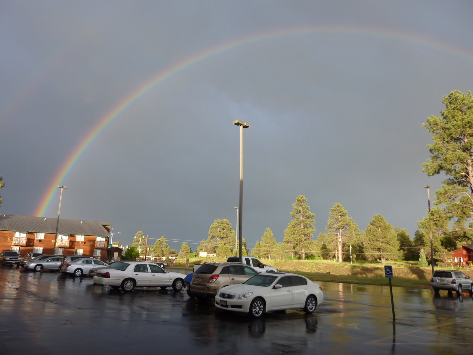 Here's a way to end the day. Once at our hotel, it rained for another couple of hours and then Lennie spotted this outside of our hotel window. She grabbed the camera and went out to the parking lot to take a picture. Perhaps a sign that someone was looking out for us today? All I can say, is that I am glad today's ride is done, it was only 166 miles in total, but I was exhausted once we arrived at the hotel.
